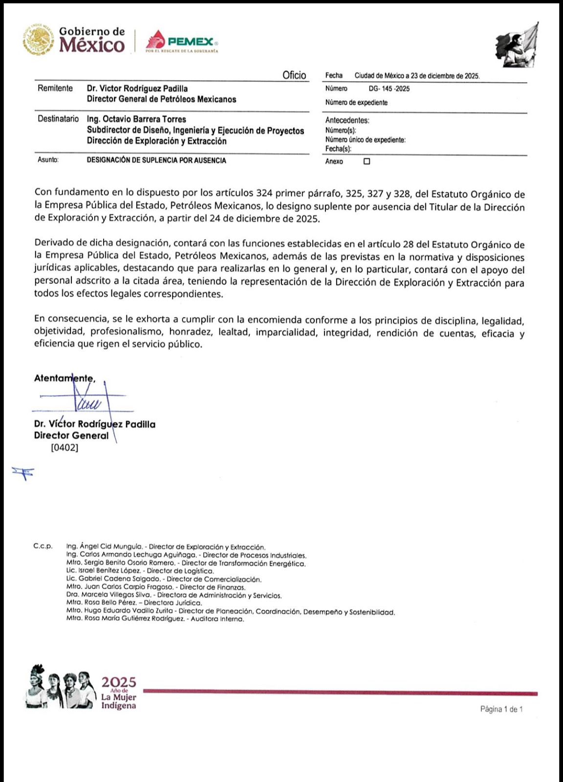 Denuncia al 9933989844…. 🚩⚠️¡BARRERA por CID en la DEE/PEP!; Se confirmó lo adelantado en este espacio, Octavio Barrera Torres, subdirector de diseño, ingeniería y ejecución de proyectos, suple por ausencia a Ángel Cid Munguía en la Dirección de Exploración y Extracción de @Pemex DEE antes @Pemex Exploración y Producción PEP; atención @Claudiashein @LuzElena_GE …Zas!!!!