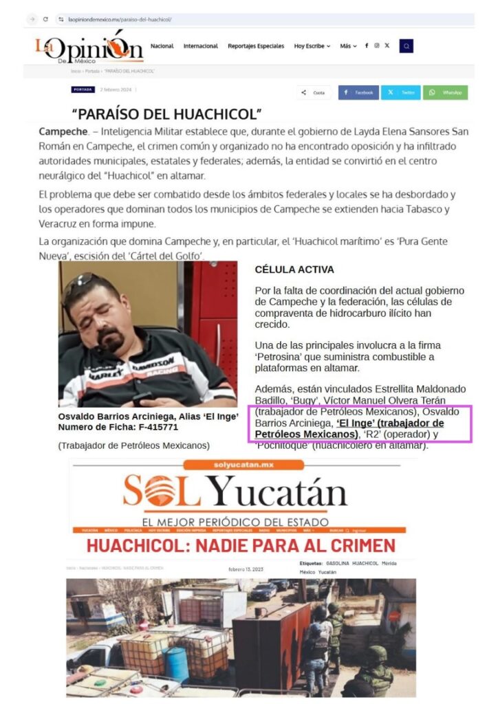 Denuncia al 9933989844…🚩⚠️🚢 ¡”EL INGE” ARCINIEGA, embarrado con huachicol, sigue operando en plataformas Pemex!; trabajadores señalan que sigue operando con total impunidad Osvaldo Barrios Arciniega “El Inge” (F-415771) en @Pemex , a quien medios periodísticos relacionan en una investigación abierta militar como presunto “operador de huachicol fiscal”, junto a Víctor Manuel Olvera Terán, en otros trabajadores indagados, en plataformas de la Sonda de Campeche frente a Ciudad del Carmen; servidor público que “copia contratos con empresas privadas, extorsiona y (según reportes de inteligencia militar) forma parte de una célula activa dedicada al huachicol, ligada al crimen organizado a través de una flotilla de embarcaciones que llevan el combustible a buques de mayor calado que a su vez lo venden en las plataformas como AE Sonora y Chemul, que facturaban a través de empresas como Promar y Petrosina”; lo peor es que es trabajador activo del STPRM del delfín de Deschamps, Ricardo Aldana Prieto; atención @Claudiashein @MarcelaVilleg15 @CNE_Mex @SENER_mx @GobiernoMX @FGRmexico @LuzElena_GE @ASF_Mexico @SCJN @STPS_mx @Tu_IMSS @SEMARNAT_mx @agencia_asea @CENAGAS_mx @IMPetroleo @SATMX @Hacienda_Mexico @BuenGobierno_mx @Centrofcrl #OIC #UIF #OmarReyesColmenares …Zas!!!