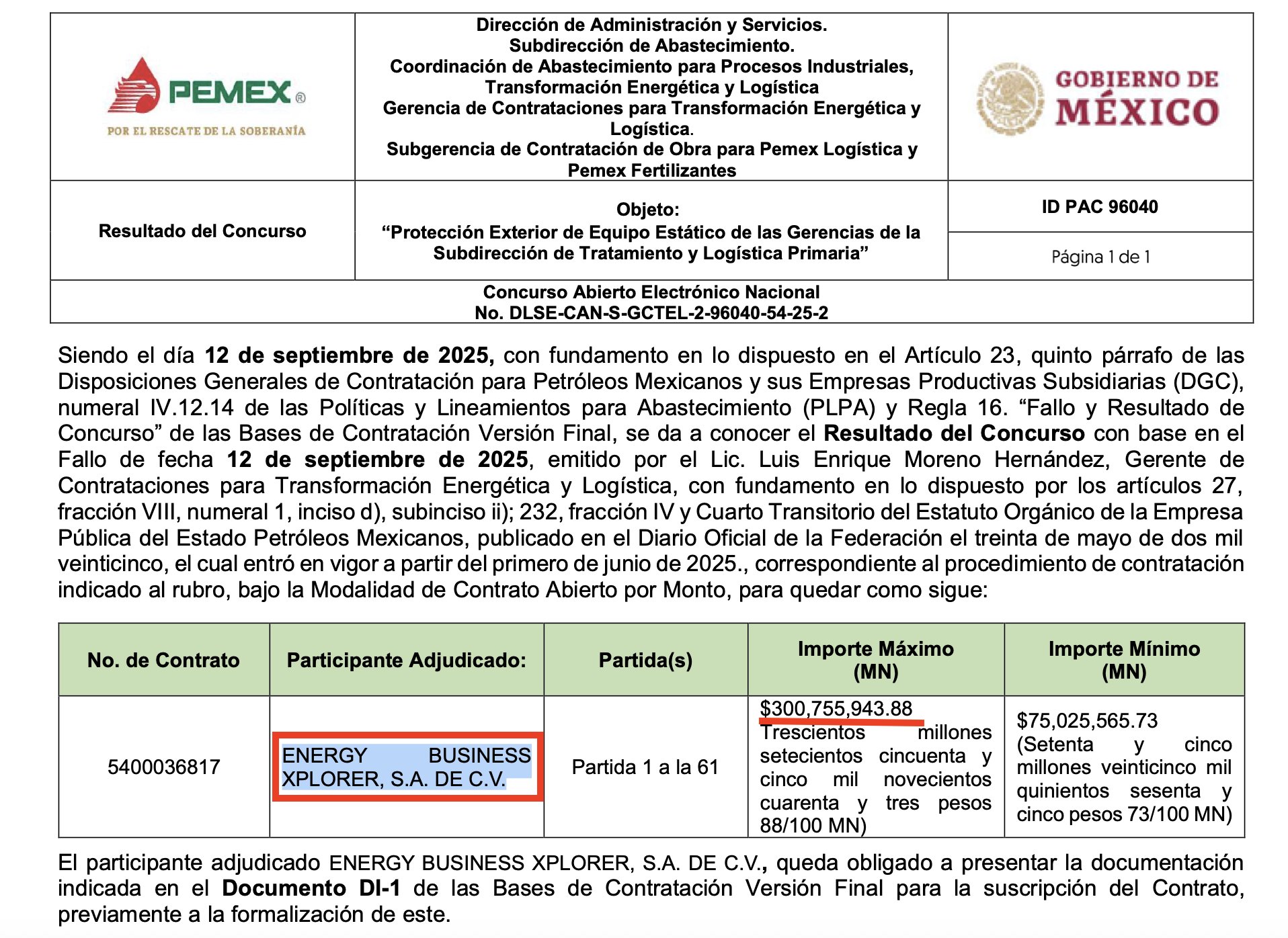 Denuncia al 9933989844… 🚩⚠️🤑 ¡XPLORER gana $600 MDP en Pemex, embarrada con A ROVIROSA, detenido en EU por sobornos!; hasta antes de 2025, la empresa tabasqueña Energy Business Xplorer, fundada desde el año 2013 por Christian Alejandro Gómez Méndez y Pedro Osorio García -hoy tiene como accionistas a Luis Alberto Hinojos Ramírez y Armando Carlos Cano Cherizola- no figuraba como contratista, pero extrañamente en los últimos cinco meses ganó dos contratos en @Pemex que suman un monto de 600,628,307.88 pesos; el primer contrato fue adjudicado el pasado 30 de abril a través de la licitación PEP-CAN-O-GCP (Lucy Lozano Rodríguez) 502-102565-25-1 para los servicios de mantenimiento y rehabilitación de redes contraincendios en instalaciones de proceso de los Activos de Producción de @Pemex Exploración y Producción (PEP ahora DEE) por un monto de 299,872,364 peso, que fue avalado entre otros por Elsa Elena González Izquierdo, SPA del titular de la subgerencia de contrataciones sur, y Pablo Ángeles Hernández, superintendente de Contratación; el otro contrato fue otorgado el pasado 12 de septiembre a través de la licitación No. DLSE-CAN-S-GCTEL-2-96040-54-25-2 para la protección exterior de equipo estático de las Gerencias de la Subdirección de Tratamiento y Logística Primaria por un monto máximo a ejercer de 300,755,943.88 pesos, avalado por los funcionarios Enrique Gascón López, SPA de la Subgerencia de Contratación de Obra para @Pemex Logística y @Pemex Fertilizante (PLOG y PF ahora DLSE y DPI), y Refugio Sobrevilla Tadeo, supervisor; pero resulta que Energy Business Xplorer podría estar ligada a los caso de soborno por las que el Gobierno de EU detuvo al empresario tabasqueño Ramón Alexandro Rovirosa Martínez, quien permanece detenido, pues resulta que Luis Alberto Hinojos Ramírez, hoy socio mayoritario y administrador único de Energy Business Xplorer fungió como representante legal del consorcio Bloque VC O1 SAPI, empresa encargada del área contractual VC 01 en Veracruz y en la que el mismo Rovirosa Martínez fungía como consejero, según muestran documentos oficiales; solo así, a través de los sobornos denunciados por EU es que podría entenderse que la firma Energy Business Xplorer que no figuraba como contratista en @Pemex , hoy tenga firmado dos contratos por más de 600 MDP en la petrolera nacional; atención @Claudiashein @MarcelaVilleg15 @CNE_Mex @SENER_mx @GobiernoMX @FGRmexico @LuzElena_GE @ASF_Mexico  @SCJN @STPS_mx @Tu_IMSS @SEMARNAT_mx @agencia_asea @CENAGAS_mx @IMPetroleo @SATMX @Hacienda_Mexico @BuenGobierno_mx @Centrofcrl #OIC #UIF #OmarReyesColmenares …Zas!!!